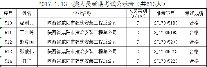 現(xiàn)將全省2017年1月13日受理的袁國(guó)慶等613人的建筑施工企業(yè)“三類(lèi)人員”繼續(xù)教育考試成績(jī)予以公布,并就有關(guān)事項(xiàng)通知如下: